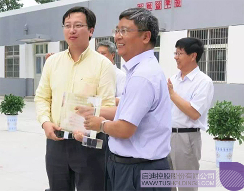 阜宁县教育局局长蔡卫国向开云手机入口_开云(中国)控股代表赠送“开云手机入口_开云(中国)楼”模型